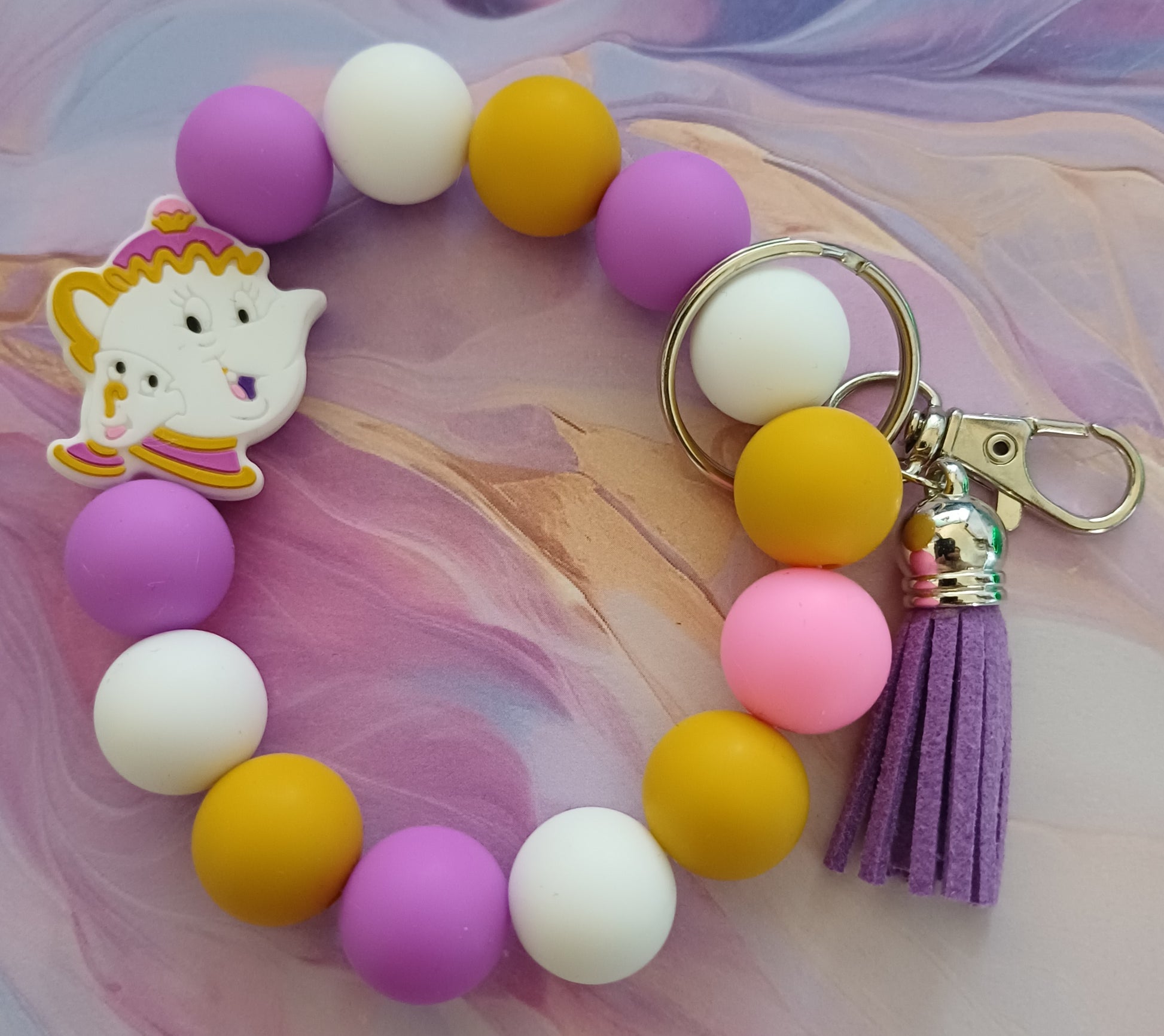 Inspired by the timeless tale of Beauty and the Beast, our Enchanted Teapot Silicone Charm Bracelet Clip captures the charm and warmth of everyone’s favorite talking teapot. Featuring a whimsical teapot charm, this bracelet is adorned with regal purple, classic white, and shimmering gold silicone beads for a fairytale look you'll love.